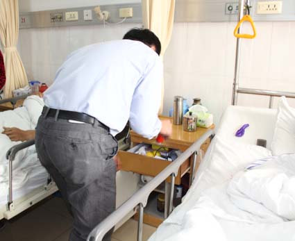 組專家檢查病房柜子內(nèi)有無蟑螂